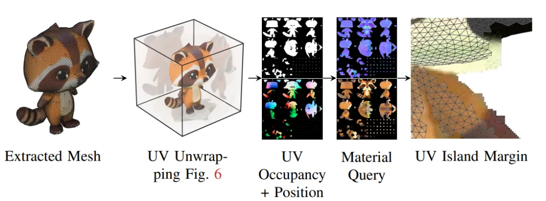 通过三平面特征变换器(Triplane Transformer),将点云数据转换为包含反照率(Albedo)、金属度(Metallic)、粗糙度(Roughness)的PBR材质球。为解决动态光照难题,创新性采用球面高斯照明模型(Spherical Gaussian Lighting)分离漫反射与镜面反射分量。